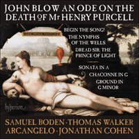 After Purcell’s death at the age of only thirty-six, several leading musicians were moved to compose odes in tribute to him. The grandest, laid out for soloists, chorus and full orchestra, is by Clarke, but incomparably the finest is Blow’s Ode on the Death of Mr Henry Purcell ‘Mark how the lark and linnet sing’, modestly scored for two ‘countertenors’ (who in the period were simply light tenors, singing almost entirely with the full voice and slipping into falsetto only for the very highest notes), two recorders (instruments closely associated with mourning), and continuo. Blow’s music rises to the same lofty heights as its superb elegiac poem, by John Dryden, the greatest poet of the age and another close associate of Purcell’s. (Dryden nevertheless made one mis-step, describing Purcell as ‘the god-like man’; hearing his former pupil and lifelong friend deified evidently stuck in Blow’s craw, for he substituted what turned out to be the best known verbal phrase in the work: ‘the matchless man’.) The music is expansive, and compelling in its structural logic. It opens with a majestic duet in two movements (sombre common time, followed by triple), both with recorders. Next comes an extended solo in three movements, the first of them without recorders and focusing the hearer’s attention on declamatory vocal writing that is as eloquent as Purcell’s best. The ode ends with another two-movement duet (again first in common time, then triple). Both duets display all Blow’s formidable command of counterpoint, while the solo writing is consistently expressive in the highest degree. Indeed, the work is not merely one of his finest—and very obviously heartfelt—but one of the most outstanding musical achievements of its entire period.